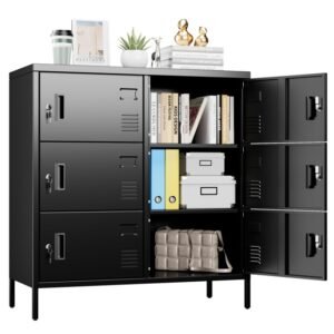 6Doors Metal Storage Locker With Card Slot,Metal Locker For Employees With Keys And Ventilation Holes,Suitable For Office, Home, Bank, School,Gym,Requires Installation,Black
