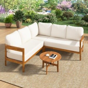 U-Style Acacia Solid Wood Patio Furniture Set Outdoor Patio Conversation Furniture Set With 6 Soft Seat Cushions And Backpack All Weather Outdoor Patio Sofa With Arc Frame For Backyard Garden.