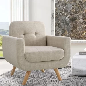 Rosevera Elena Contemporary Accent Armchair with Linen Upholstery – Beige, Durable and Comfortable Living Room Furniture by DUTRIEUX